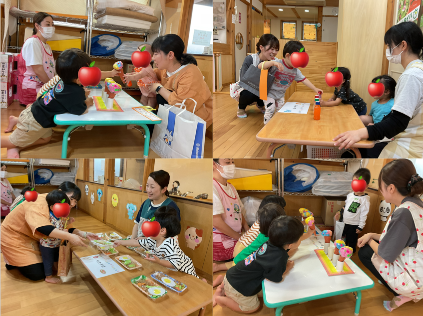最後は保育士がお店やさん、とまとぐみの子どもたちがお客さんです。